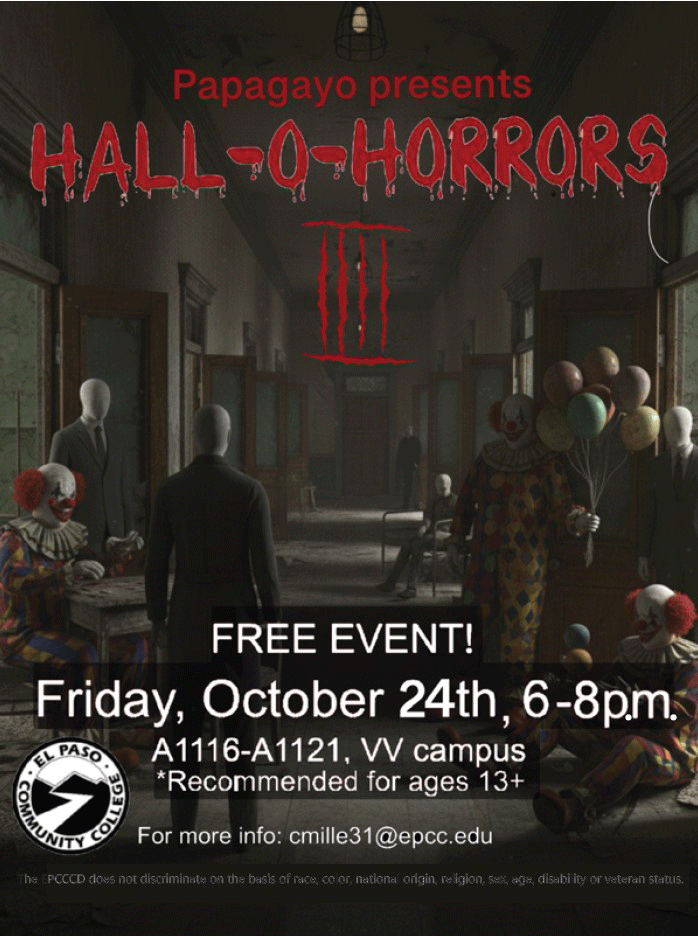 Oct. 24 Hall-O-Horrors IV, Valle Verde Campus, 919 Hunter Drive, El Paso, TX 79915, Building A, Rooms 1116-1121, 6-8:00 p.m. (FREE)