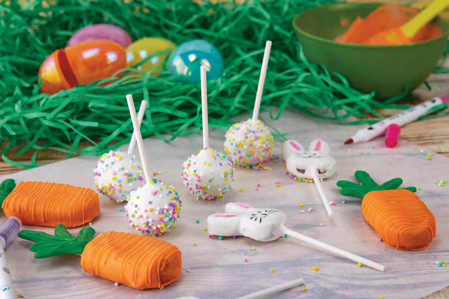 While plastic eggs may have led to a decline in good, old-fashioned egg-dyeing, there are still fun ways to bring crafts back to Easter celebrations. Consider these Kids Krafty Easter Cake Pops, which call for little ones to help dip seasonal shapes in chocolate, use cake molds and more.