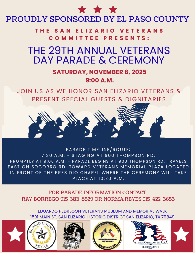 The 29th annual Las Cruces Veterans Day Parade begins at 11 a.m. Saturday, Nov. 8, 2025, in downtown Las Cruces.