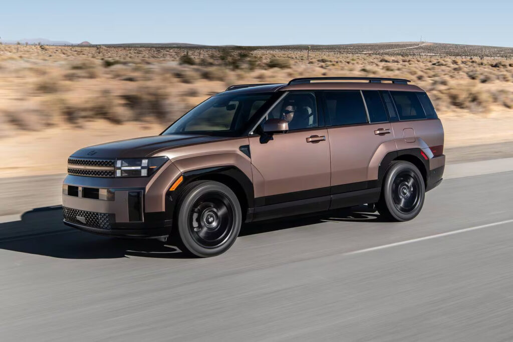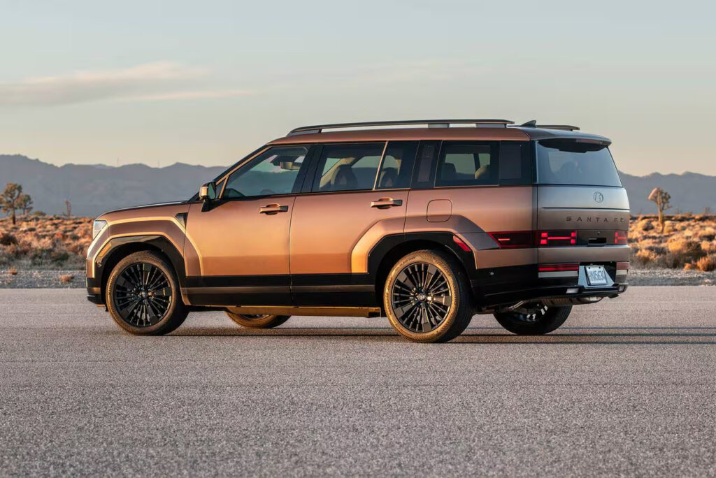 Hyundai spared no options in the Santa Fe Hybrid that they sent to me – an all-wheel drive version in their plush Calligraphy trim. The MSRP that came with it showed a price tag of a very reasonable $52,985. Other trim levels that the Santa Fe Hybrid is offered in is the SE which is the base model and gets 18-inch wheels, hands-free power liftgate and dual-zone climate control, the SEL which adds synthetic leather interior, heated front seats, power driver’s seat, and third-row air vents. Move up to the Limited and things get really luxurious with real leather, a panoramic sunroof, power passenger seat, heated rear seats, side window sunshades, a heated steering wheel and a full digital instrument display. The Calligraphy takes it up a notch by changing the leather to an updated premium leather with quilted stitching, suede headliner, a heads-up display and unique exterior trim. It rides on 21-inch wheels. Pricing for the 2026 Santa Fe Hybrid starts at $36,400.